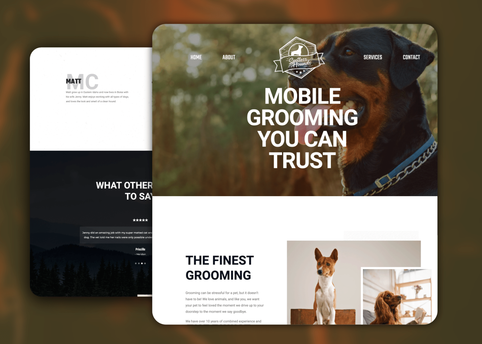 Created a logo, website, and business cards for a mobile dog grooming business. Optimized the new website to appear on the first page of Google searches under “mobile grooming boise”