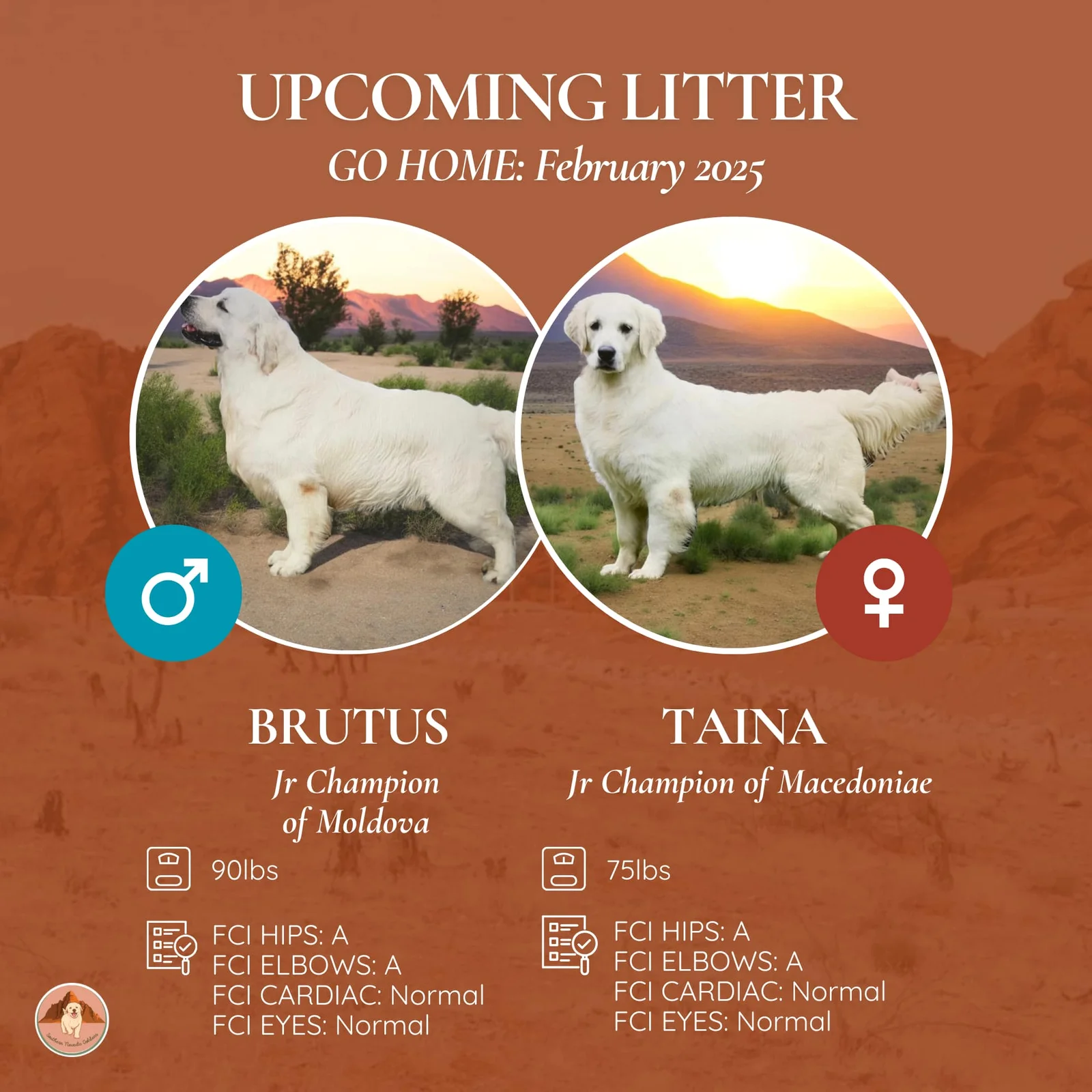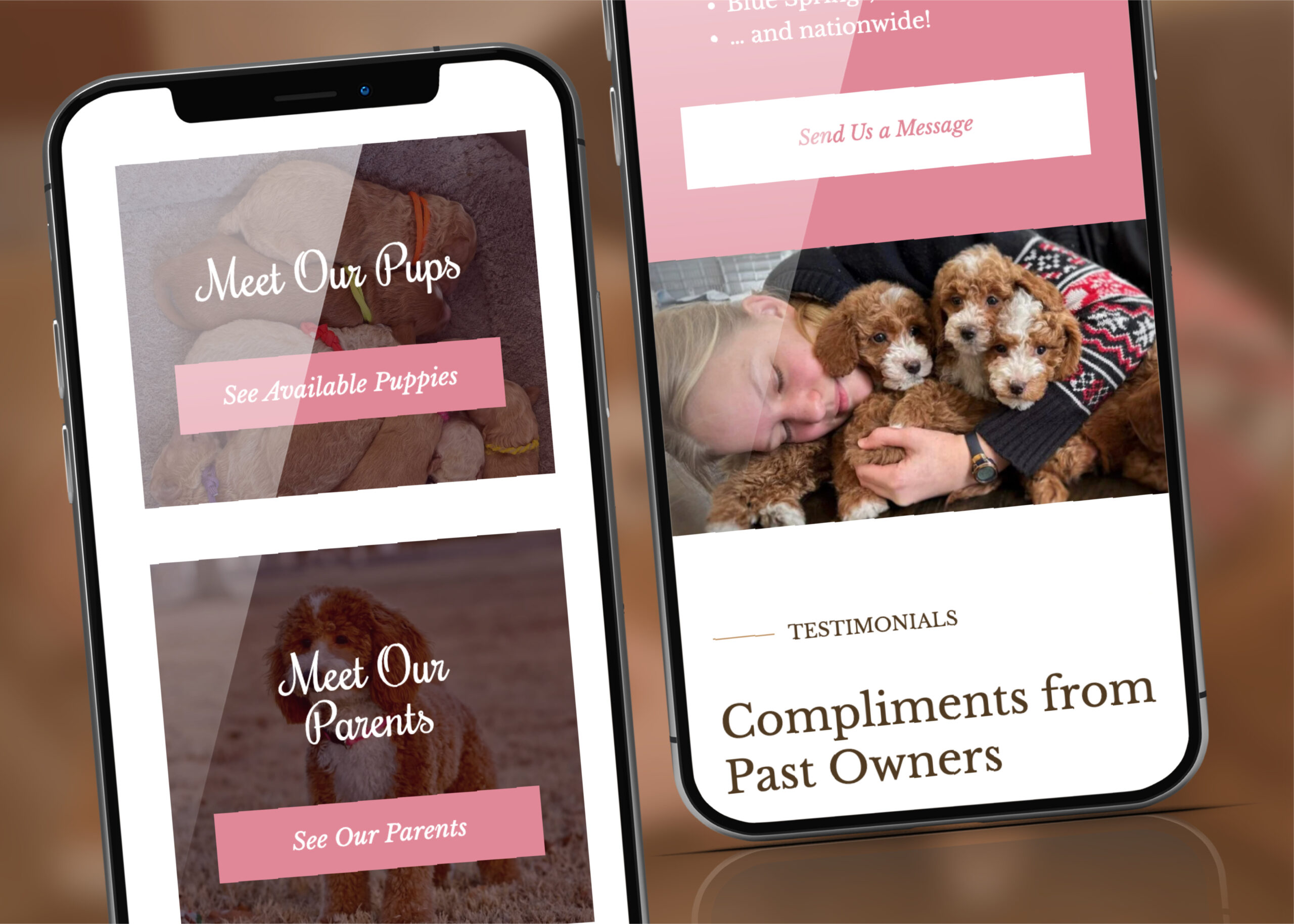 Created a website and Canva litter announcement for a golden retriever breeder business. Optimized the website to appear on the first page of Google searches under “golden retrievers las vegas”
