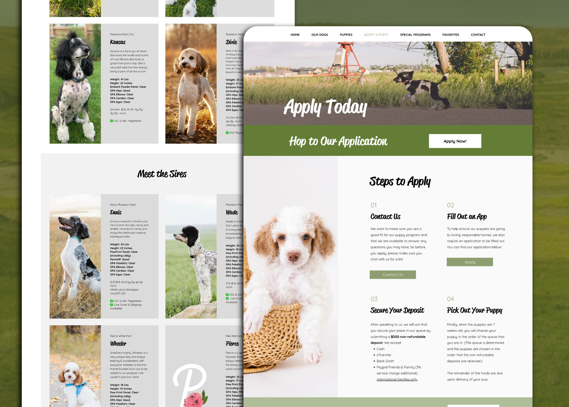 Created a logo, website, and canva litter announcement for a bernedoodle breeder business.